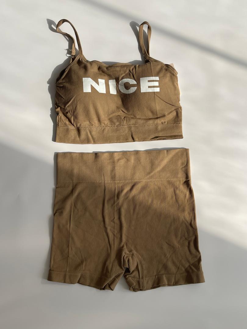 ناموجودست نیمتنه و شورتک ورزشی زنانه رنگ نسکافه ای